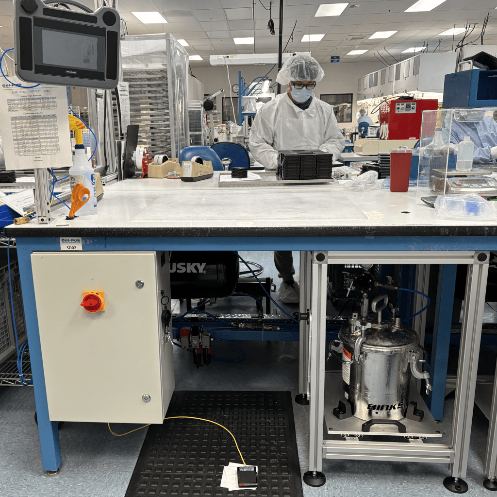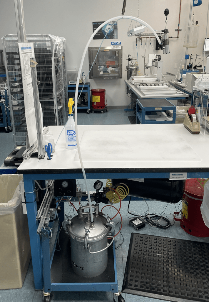 For this project, I was tasked with upgrading one of our “Timer” based Gel Dispense systems to a “PLC-controlled” Gel Dispense system. The design of the PLC-controlled system was performed by my colleague Ryan Gagne, the Principle Engineer. My task was to replicate his system based on some of his notes. I was in charge of ordering parts, fabricating the electrical box, flashing the PLC & HMI, installing it into the cleanroom, and qualifying the system.
